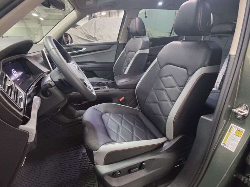 OOK AT THE LOW MILES on this 1-OWNER Avocado Green with Heated and Vented Seats PEAK EDITION 4-MOTION ALL WHEEL DRIVE with SUNROOF -- only 6k Miles! 1-OWNER VW Corporate Driven 7 Passenger SUV Backed by a CLEAN Accident Vehicle History Report, Remaining 4 Year 50,000 Mile Bumper-Bumper Warranty, 5 Years Connected Services (Including Cell Phone Remote Start), 2 Years PrePaid Maintenance, and 24 Hour Roadside Assistance! LOADED with Technology and Luxury with Features Like Power Panoramic SUNROOF, Touchscreen Audio with SiriusXM Satellite Radio, BLUETOOTH Connectivity with Streaming Audio, Heated Steering Wheel, Forward Collision Alert, Adaptive Pace Keeping Cruise Control (ACC), BLIND SPOT Monitoring, Lane Keep Assist with Centering, Front and Rear USB Ports, BACKUP CAMERA, Power Driver's Seat, THREE ZONE CLIMATE Control, Gloss Black Alloy Wheels, Auto Headlamps, VW Car-Net App-Connect smartphone integration w/ Apple CarPlay, Android Auto, REMOTE START, LED Headlamps with LED Running Lights, Keyless Access with PUSH to START, Power Sunroof/Moonroof Sunshade, Power Liftgate, Backlit Front and Rear Logos, and 5000lb Towing Package and Much Much More!