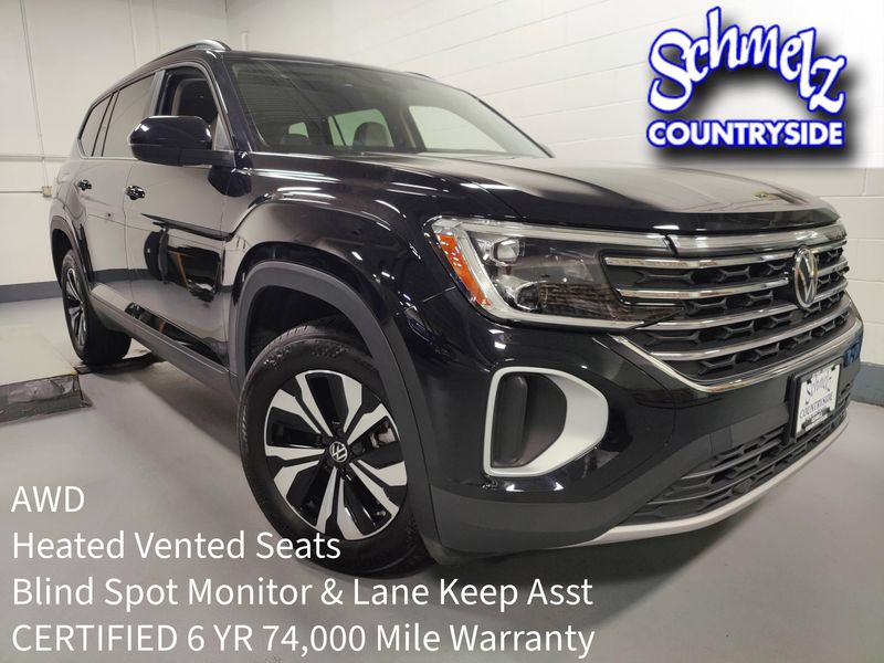 A MUST SEE 1-OWNER SE 4-MOTION ALL WHEEL DRIVE that has Remaining Factory CERTIFIED WARRANTY of 6 YEARS 74,0000 Miles, 5 Years Connected Services, 24 Hour Roadside Assistance, and a CLEAN Accident Free Vehicle History Report! Elevate your driving experience with features designed to make every journey unforgettable like Heated and Vented Front Seats with Heated Steering Wheel. Advanced Safety: Drive with confidence knowing you're protected by VW IQDRIVE that Includes Forward Collision Alert with Braking, BLIND SPOT Monitoring, Adaptive Pace Keeping Cruise Control, Lane Departure Warning with Lane Centering, and a trusty Backup Camera. Your safety is our priority. Stay connected and entertained with SiriusXM Satellite Radio, Wireless Apple CarPlay and Android Auto, and Bluetooth Streaming Audio. Experience comfort with Driver's Power Seat, Keyless Access with Push to Start, and MultiZone Climate Control. Versatile Interior: With the practicality of 7 Passenger Seating and Best in Class Rear Legroom, the Atlas offers a spacious and flexible interior to accommodate your lifestyle. Drive the perfect blend of sophistication and performance.